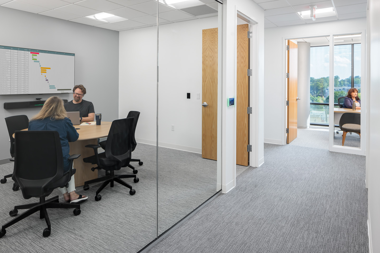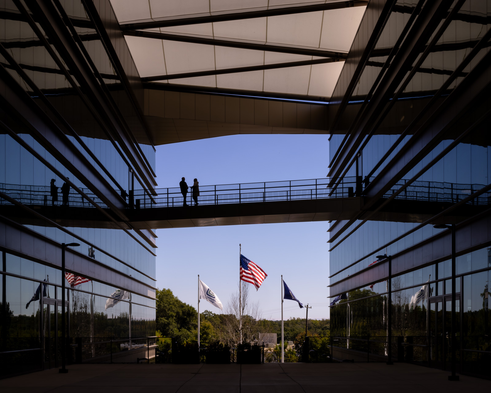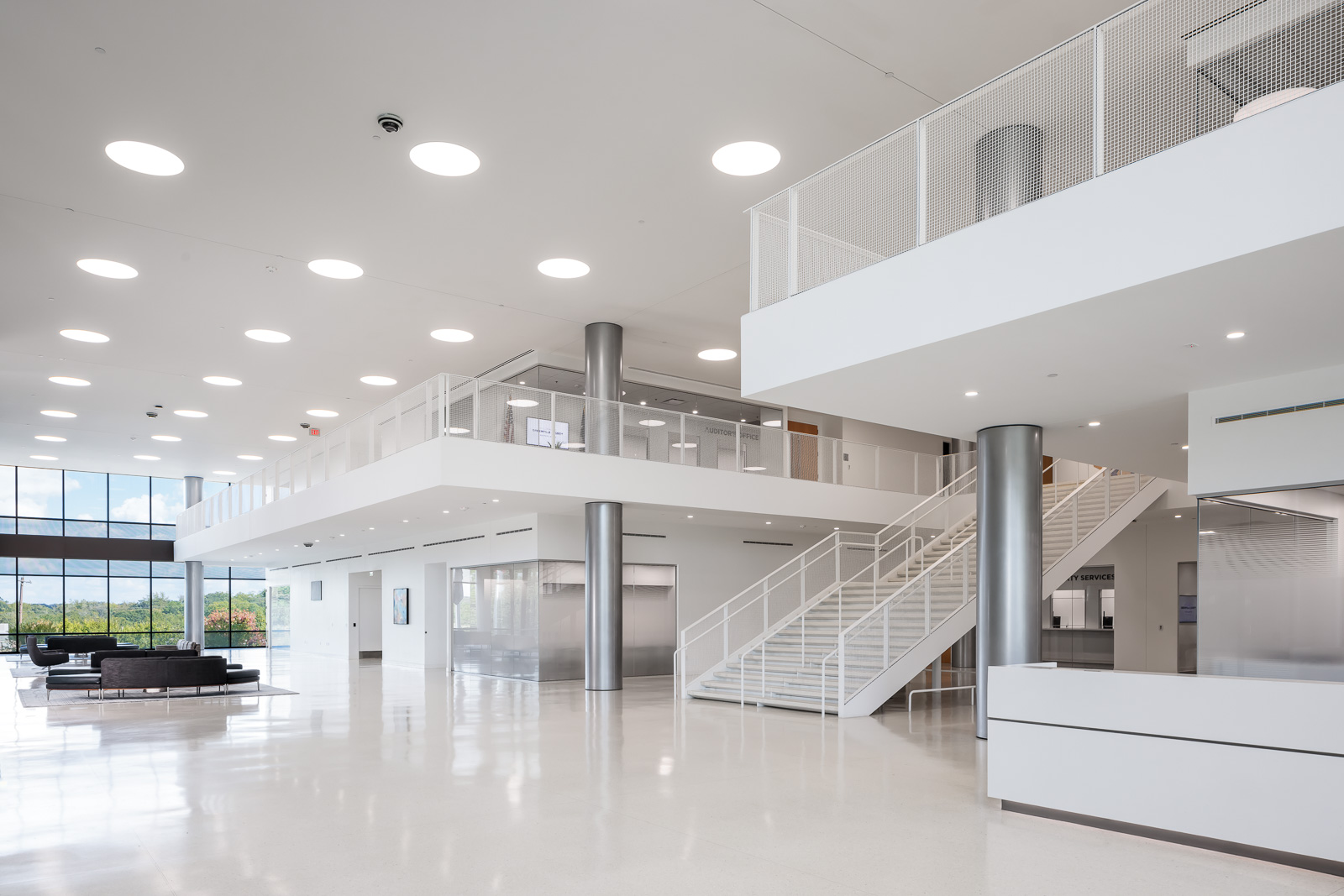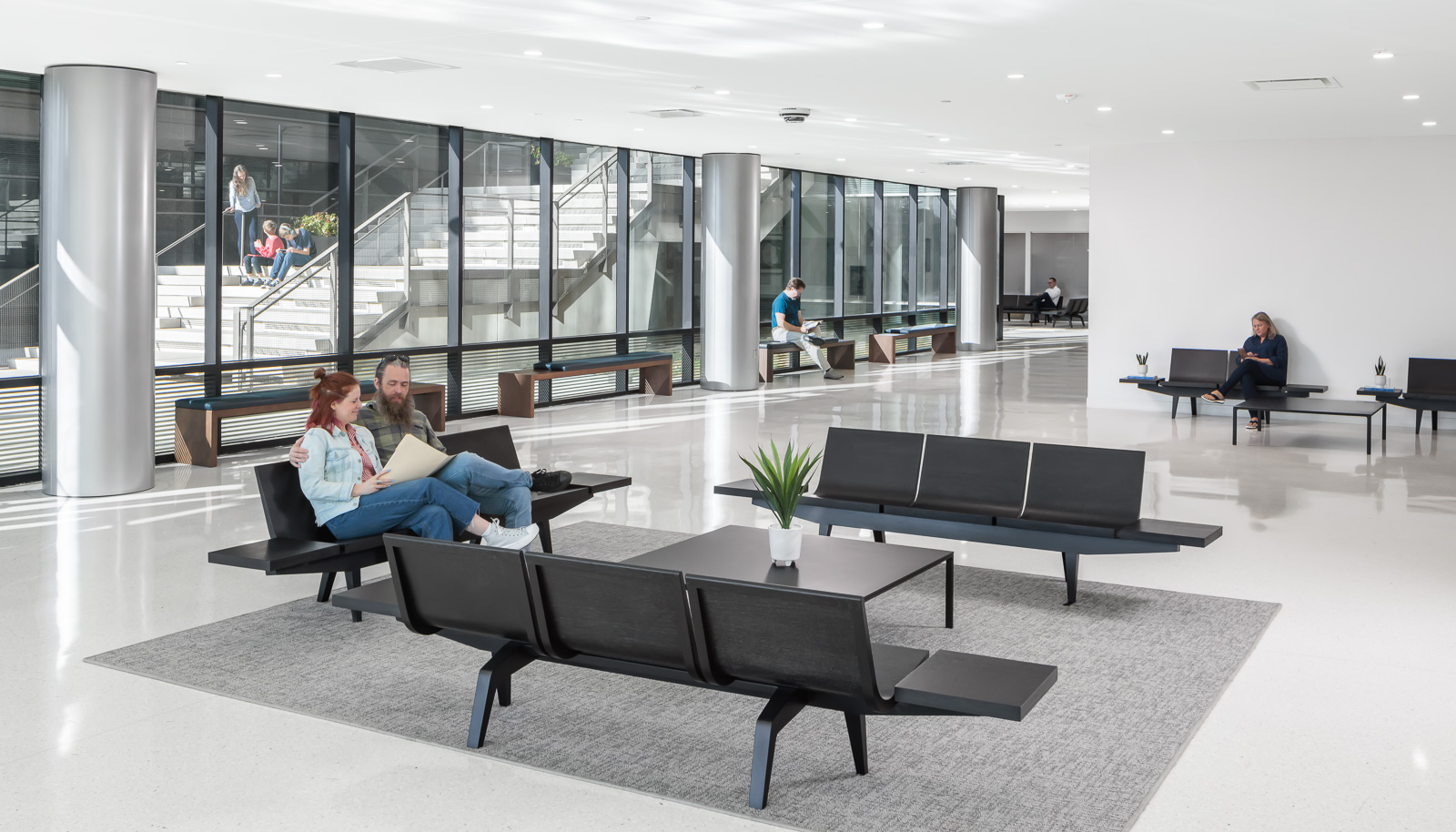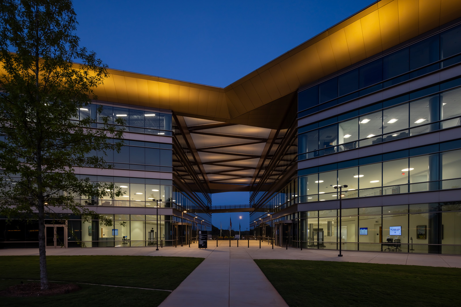 The new Administration Buildings consist of two contemporary, fully-amenitized five and six-floor office towers connected by a pedestrian skybridge. Consolidating the full array of the County’s public services in one central location, the buildings consist of twin lobby levels housing Tax, Real Property Services, the Council Chamber, as well as future retail and fast-casual food options. The terrace level, housing the Probate and Magistrate Courts as well as supporting offices, features dramatic outdoor people space with places to sit and linger sheltered by the iconic canopy overhead. Upper floors include County offices, employee training and wellness zones as well as a variety of conference rooms and huddle spaces.