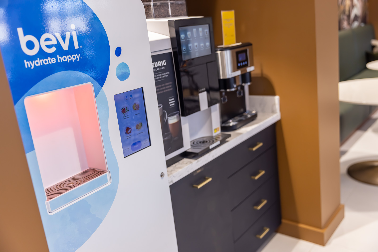 The grab-n-go market features brand new, state-of-the-art appliances and offers a large variety of farm-fresh sandwiches, salads, beverages and snacks. Adjacent to the market is an air hockey table to encourage socialization and provide tenants with a reprieve from the office environment. All of 701 Local receives substantial natural light from the ground-floor, exterior windows that span an entire wall.