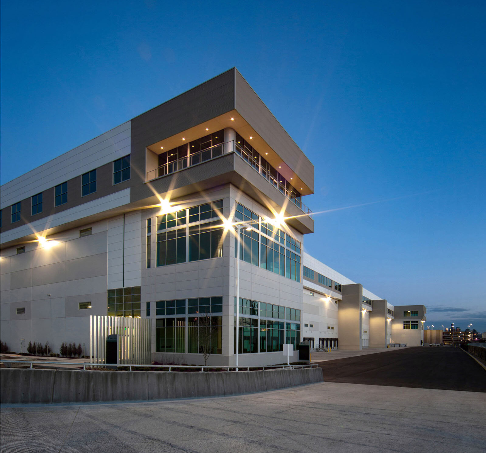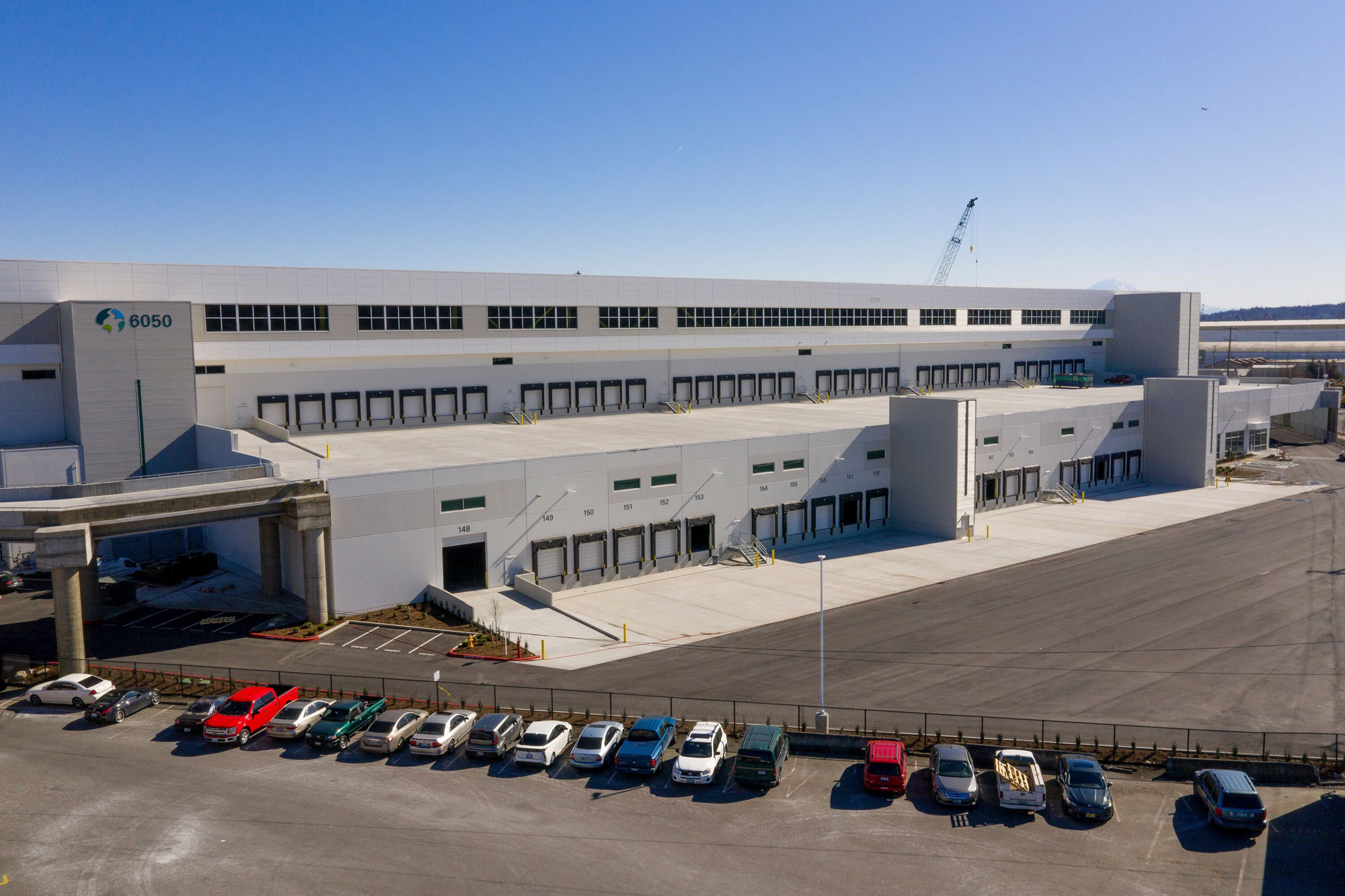 The first level of the warehouse, located south of Seattle’s central business district, is designed as a double-loaded, last-mile distribution space, while the second level is single-loaded and served by two truck ramps. The third story houses manufacturing and research and development, with three freight elevators, and the entire facility is supported by a detached, three-story parking structure.