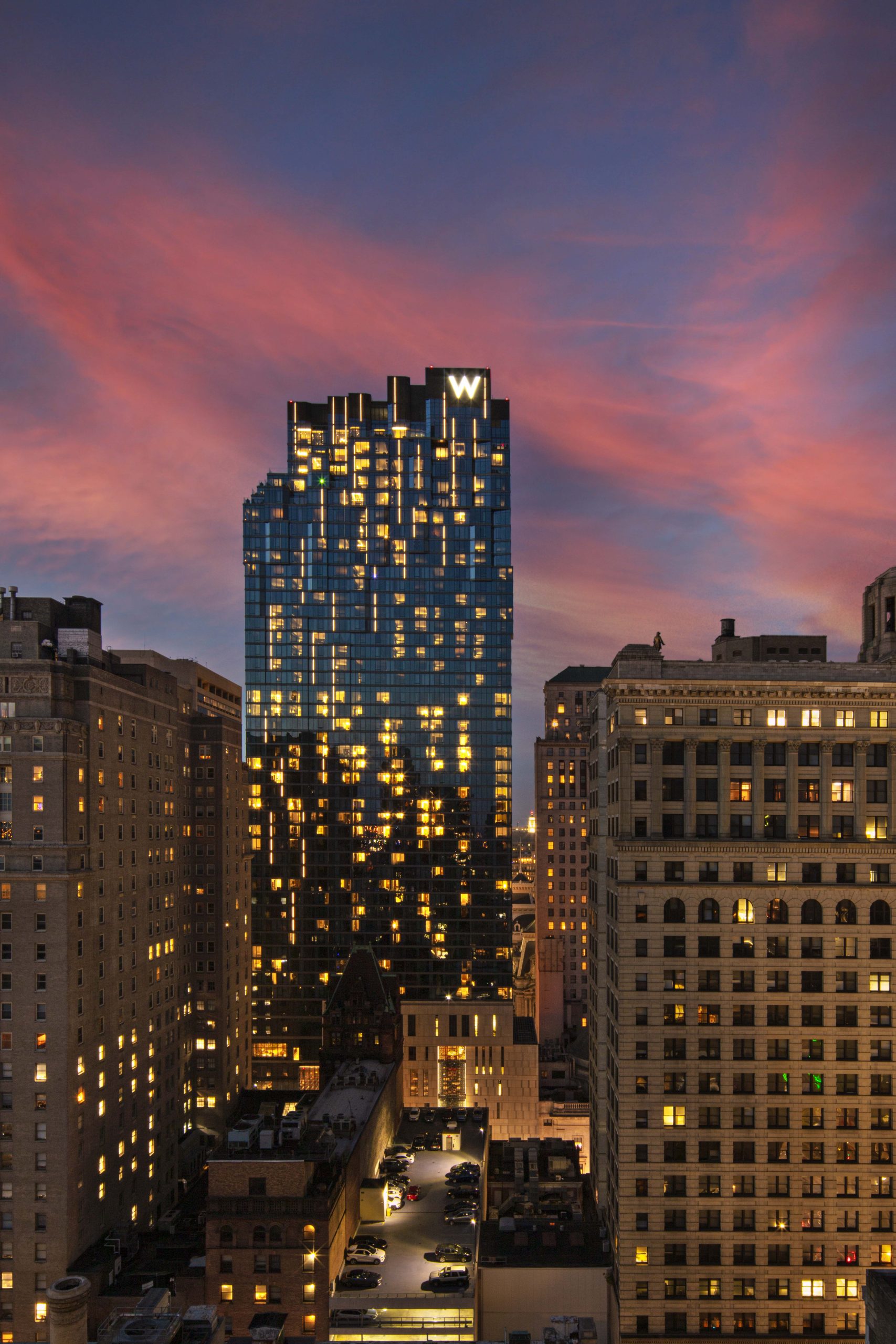 Starwood Hotels & Resorts Worldwide challenged us with creating Marriott’s first dual branded 755-guestroom W Hotels Worldwide and Element by Westin hotel. We were tasked with designing the distinctive vertical tower, transforming the Philadelphia skyline by its unmatched cascading vertical LED lights, illuminated W sign, and stepped terraces.