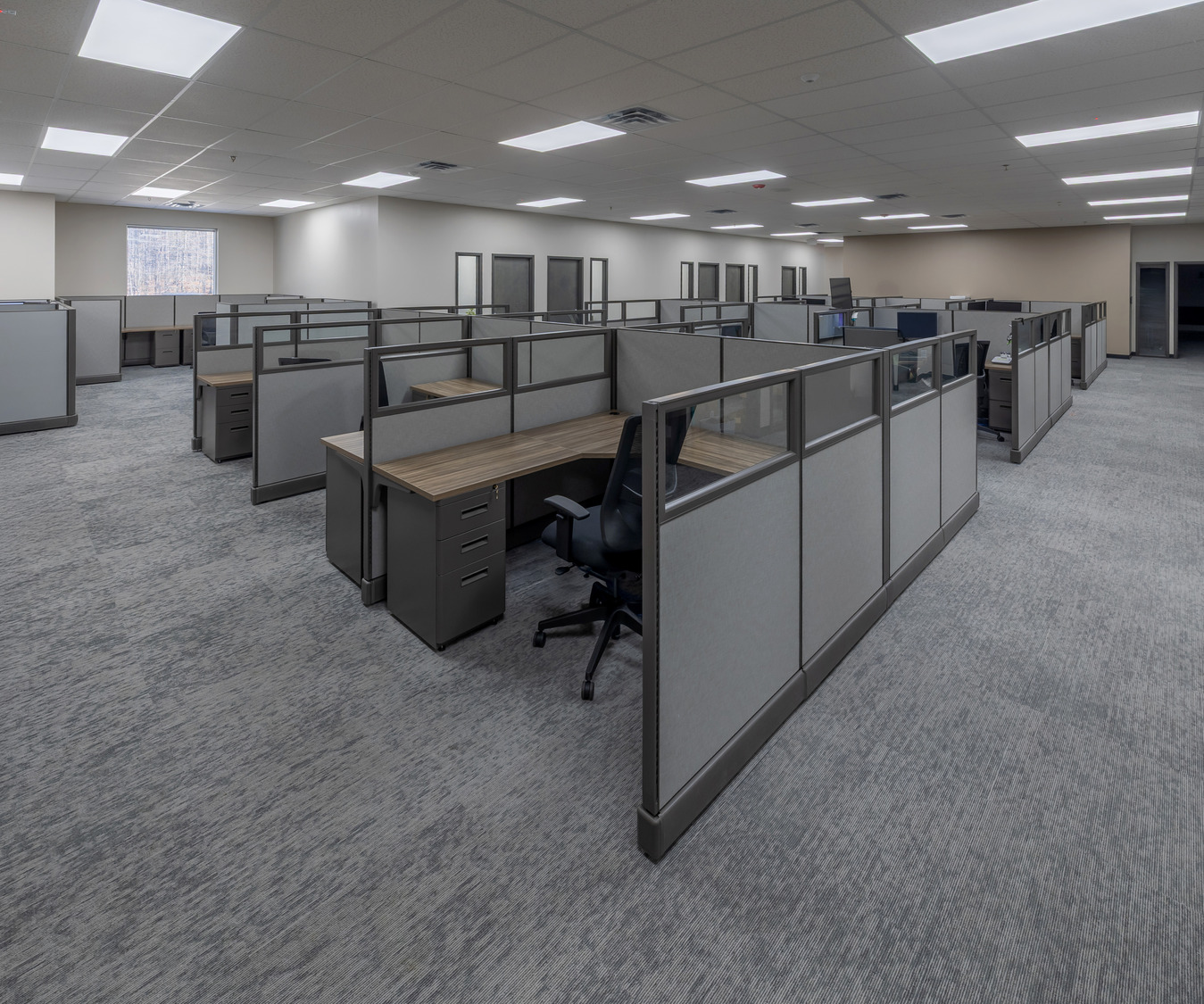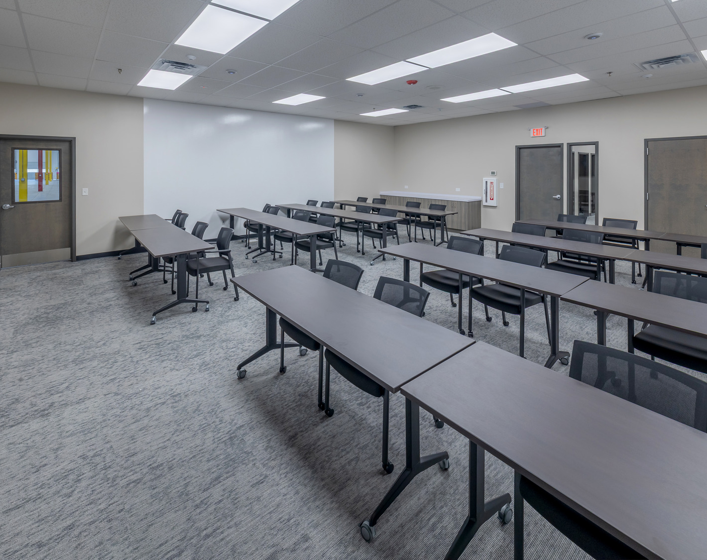 The project didn’t stop at life safety. The main office space was designed for 30–35 employees, providing a blend of open areas, private offices, and various collaboration spaces. A spacious training room for 20–30 people and a centralized warehouse-side breakroom, locker room, and restrooms for 60–80 shift workers ensured the entire Thermacell team, from leadership to the floor, had what they needed.