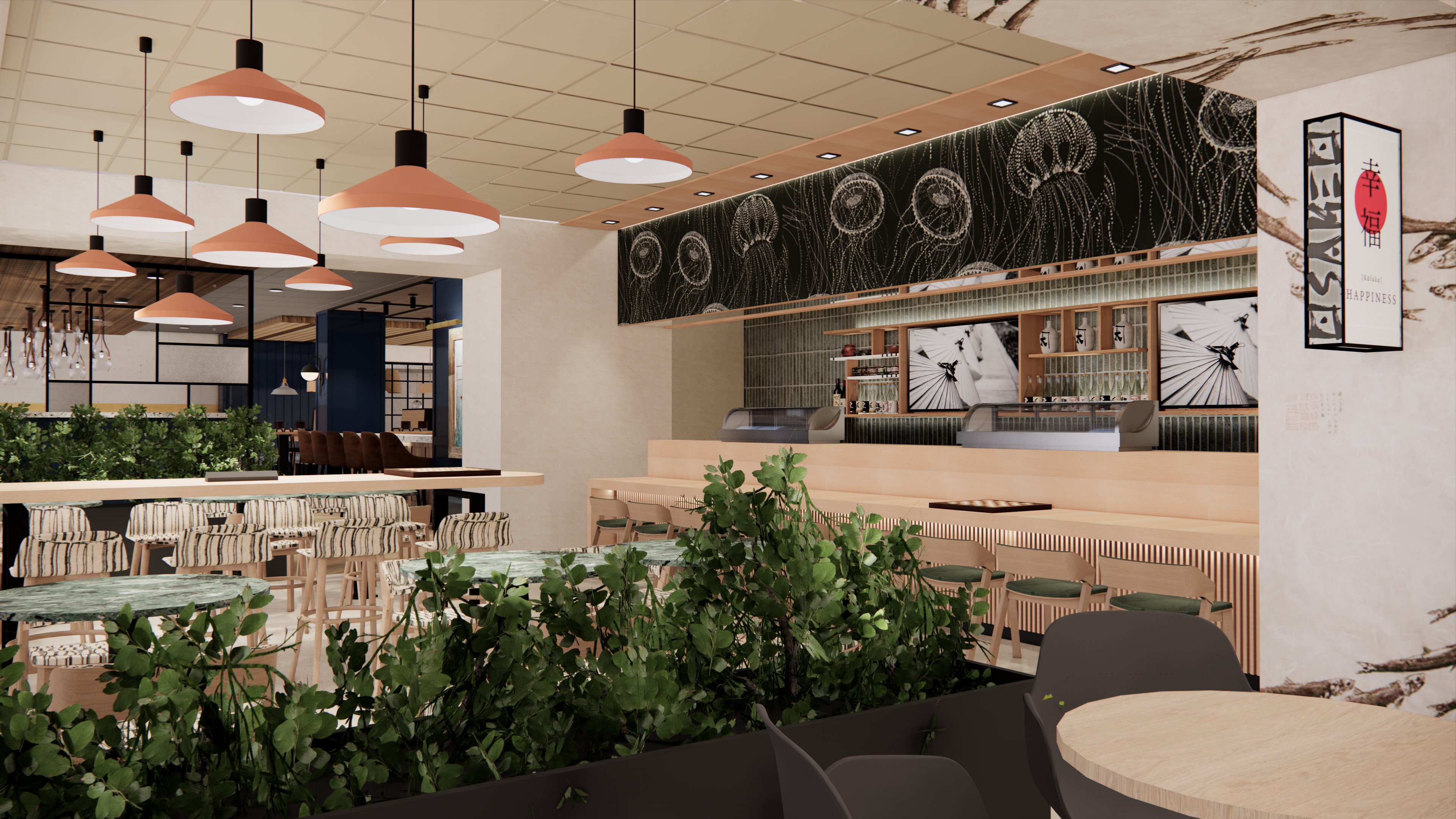 Located less than 1,500 feet from bustling Los Angeles International Airport, Sonesta LAX tapped our Hospitality team to renovate the 600-plus room, 15-floor hotel. Designers maximized seat count and circulation throughout the food and beverage space by creating an all-day food hall experience for guests, which includes a refinished sushi bar, sun-dry café market and reimagined coffee counter. The centrally-located walking buffet allows 360 degree access to patrons, which adds to the dynamism of the space, along with the new raised platform for dining.