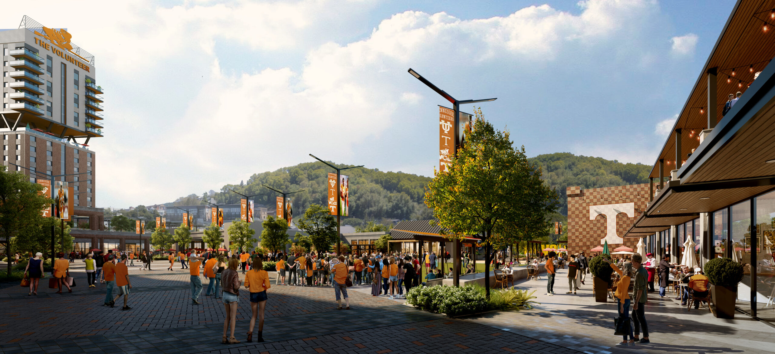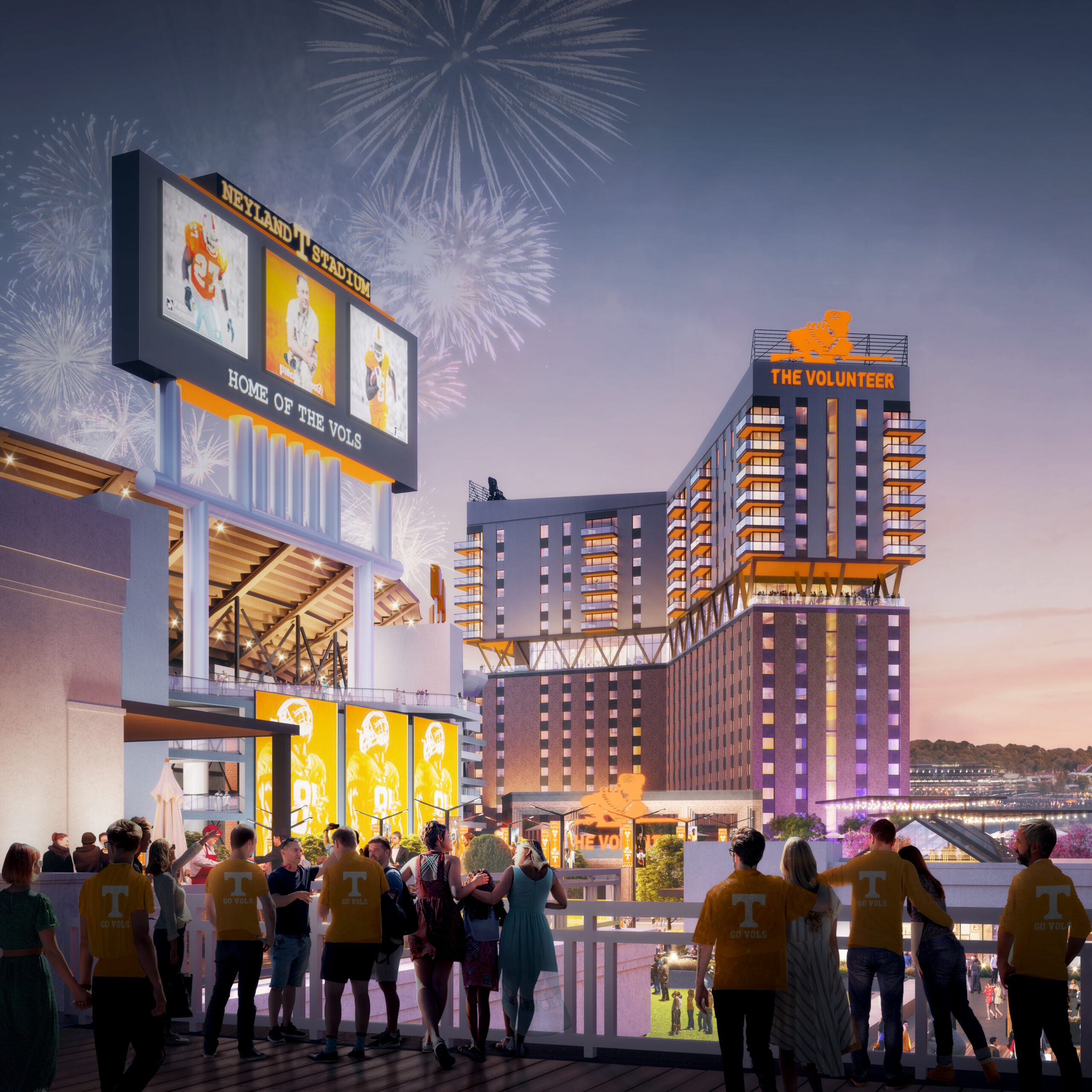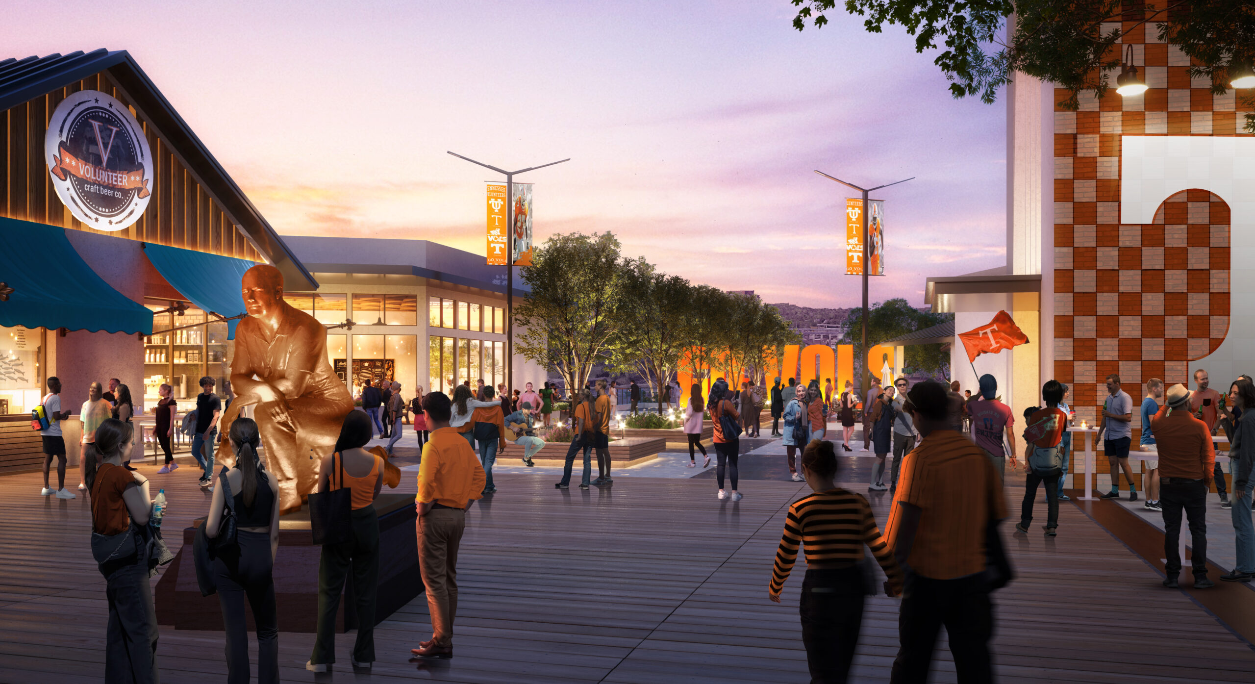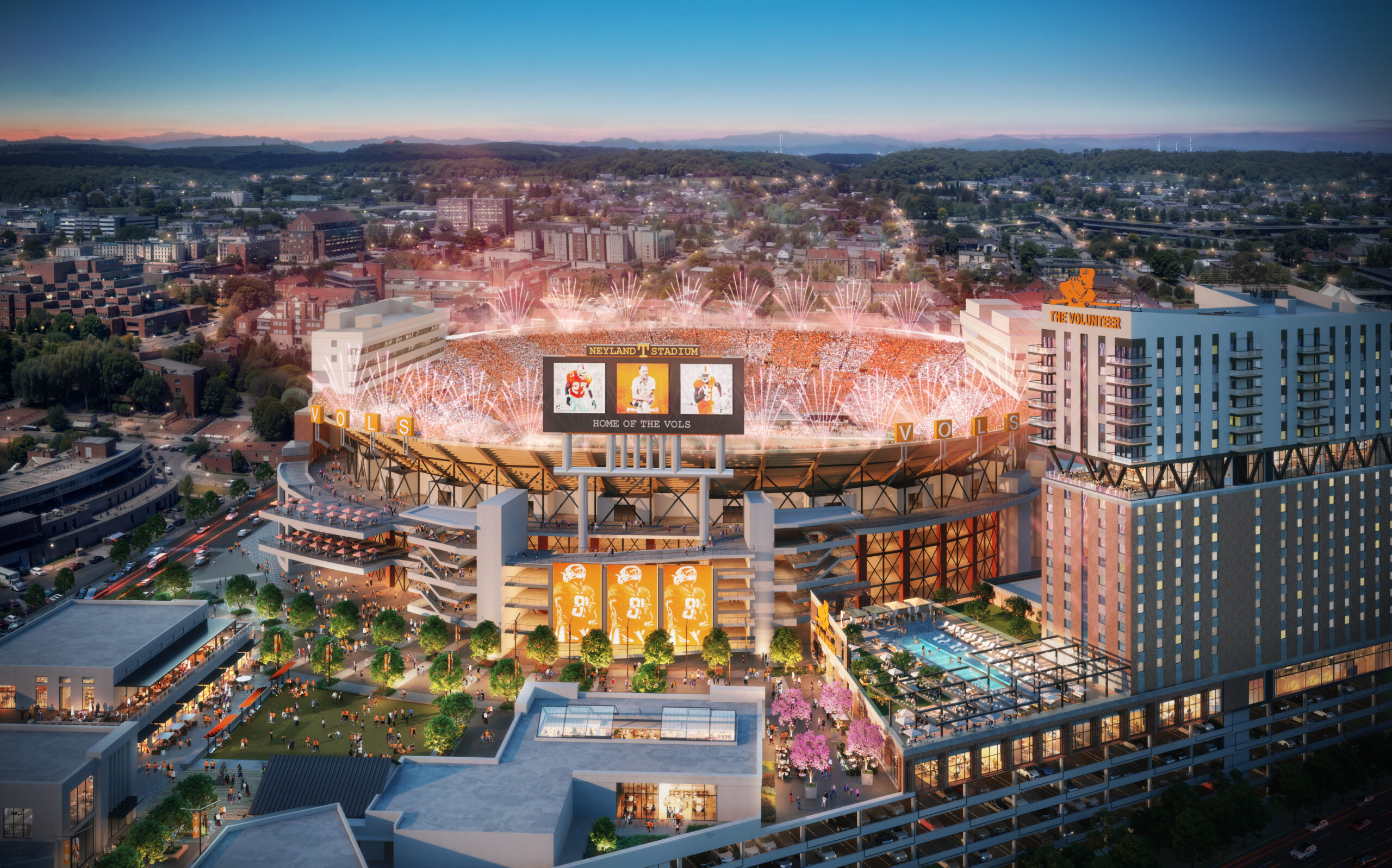 Designed to redefine the fan and guest experience, this transformative concept proposes a seamless union of Neyland Stadium and Food City Center while embracing the stunning Tennessee River views. Positioned as the vibrant living room for the greater University of Tennessee campus, the development will not only enhance game-day and event experiences but also elevate the University of Tennessee onto the national stage—aligning with its vision of “Leading the way in college sports.”